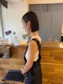 ラインがしっかりと出るように切り込んだぱつっとボブ。切りっぱなし感があり、朝のお手入れ、お家での再現性が抜群。