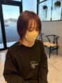 ワインレッドレッドカラー透け感バングショートボブ髪質改善