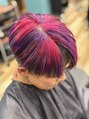 ハイブリーチにカラーを入れたデザインカラーです!お任せして頂いたので色持ちも良い暖色系のピンクをメインにミックスしました!カラー剤でのオンカラーですと、もう少しビビットさがうすまりますのでご相談ください!