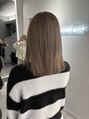 透けるような透明感のミルクティーグレージュ。こちらはカラー剤でダブルカラーをしています。ブリーチよりも傷まず、ワンカラーよりも圧倒的に透明感がでるので、現状の髪色が暗めの方、いつもオレンジになってしまう方はこちらがおススメです♪