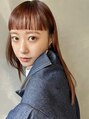 バングを眉上ブラントで揃えトレンド感のあるデザインに。カラーはピンクベージュで透明感をだし、仕上げはオイルで束感をプラス。