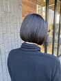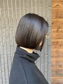 切りっぱなし・ワンレングスボブ骨格や髪質に合わせ、小顔に首が長く見える様な、ボブスタイル。前髪をセンターパートで、おでこが見えることで肌が縦長に見え、顔がシャープに見えます。似合わせ・ボブになります。