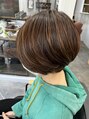 シンプルなくびれのあるショートボブ。自然に馴染む感じのハイライトで、動きのあるスタイルに♪