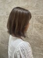 カットは顎下4~5cmの前下がりボブでレイヤーを入れくびれを作りやすくしています。カラーはブリーチでハイライトを入れベージュをオンカラー。柔らかさと立体感が可愛いです。ブリーチハイライト希望の方はブリーチメニュー、クーポンをお選び下さい!