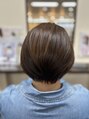 ベージュ系明るめの白髪染めアシンメトリーショートボブです。