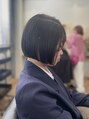 襟足ギリギリでカットした前下がりボブです。前髪あり、なしどちらもかわいいスタイルです。オイル仕上げがおすすめです◎