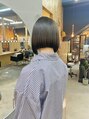 ぱつっとボブミルクティーベージュミニボブ前下がりヘイリーボブ