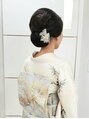 和髪です。しっとりした訪問着に合わせて、落ち着いたシニヨンアレンジにしました。