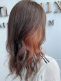 職場にバレないイヤリングカラー。しばり方一つで、うまく隠せるように設定。休みの日はコテで巻いて、みせるセットで楽しめる。インナーカラーをオレンジ色に。色落ちだって可愛いカラー◎
