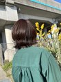 伸ばし中のお客様です。長さは肩に当たって跳ねるくらいの長さです。アイロンで外ハネにウェーブをつけて巻いてあげると動きが出て可愛い長さです。チョコレートブラウンをイメージして、色もち重視のこっくりしたカラーを入れています。