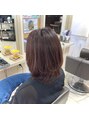 パツンとボブです。癖のある方なので、なるべくまとまりやすいようにカットで工夫をしました。カラーはブリーチのベースに、お肌がパッと明るく見えるようなピンクヴァイオレットをしっかりのせました。