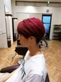 アニメのヒーローみたいなハッキリした赤を御希望でしたので黒髪→ブリーチ3回→赤の薬剤をオンカラー致しました