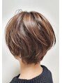 ショートレイヤー。襟足はタイトに、後頭部は丸みをもたせて頭の形が良く見えるように。イノアカラーとハイライトの組み合わせ。