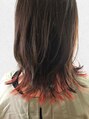 表面は自然なアッシュ系カラーインナーをブリーチ後レッドオレンジのオンカラーをしています