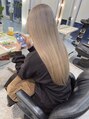 色落ちブロンド狙いのパールミルクティー。ブリーチ回数は2回以上になります。アイロンやコテの温度は高くても150°から160°がおすすめ。