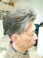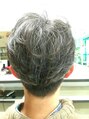 前回かけたパーマを活かしたい…との事で、アップバングのパートスタイルにしました。周りは短く刈り、前髪を短くし上げてます。白髪にも合いますね。