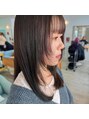 顔周りのレイヤーが柔らかさをプラス。ダークブラウンの色味が肌馴染み良く、どんなファッションにも合わせやすい万能スタイルです。重く見えがちな顔周りの軽やかな動きで垢抜けた印象に。お手入れも簡単なので、朝のスタイリングも時短に