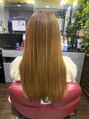 - ハイトーンのヘアーカラーに髪質改善トリートメントで仕上げました。