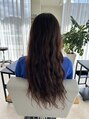 ロングのグリグリパーマ♪カラーは青黒い地毛風カラー。前髪はあえてレイヤー入れてカールに動きが出るように^^