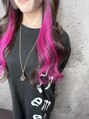 インナーエクステでローズパープルのエクステを付けました。暗髪との相性の良い派手インナーがお好きな方にオススメです♪