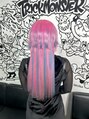 ピンクカラーのウルフに編み込みエクステで水色メッシュ!黒からの場合ブリーチ2回+カラー、色落ちブロンドです。エクステは編み込みとシールもどちらも取り揃えております◎