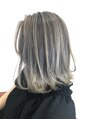 巻いて鎖骨にかかる長さにカット、表面にレイヤーを軽く入れ動きをプラス。グレージュ系のカラーでバレイヤージュを施し、柔らかさと動きを高めてます。