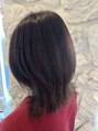 前回切ったスタイルが伸びて、くびれのようになっております。根本の白髪染めで馴染ませました!ご自身でセルフカラーしてる方でも馴染ませることできますのでぜひお任せください!