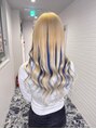 ブリーチでブロンドカラー後にブルーのメッシュをON★