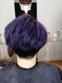 1度ブリーチの後アディクシーカラーのコバルトブルーとサファイアを混ぜたカラーでWカラーをしております