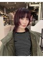ウルフカット ワイドバング レッドカラー 赤系カラー