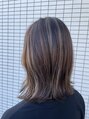 レイヤーたっぷりのセミロングカラーはアッシュベージュ系でくすみすぎず明るく見えるくらいに調整してます。