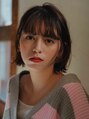 - ボブ巻きスタイル肩ライン顎ボブ外ハネセンターパートかきあげ大人女子