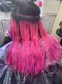 イメチェンにお薦めのインナーカラー(ピンク)インナーカラーは内側をブリーチしてから好きなカラーにする人気のヘアスタイルです。内側をブリーチするので派手になり過ぎないところが人気の秘訣です。これからイメチェンを考え中の方はご相談下さい。