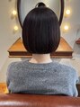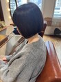 あご下のボブスタイルで頭がコンパクトに見えるよう、後ろの量感を軽くしております。スタイリング剤はバームやヘアオイルなどまとまりやすいのがオススメです^ ^