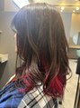 インナーとトップの明度の差をつけてインナーをしっかりと強調させたレッド系インナーカラー*トップはグレージュで光に当たった時の透明感が抜群!!