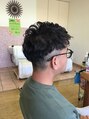 ツーブロックにミックスパーマでボリューム調整してありますハチ周りはボリュームを抑えてとっぷはボリューム出しています。