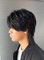 センターパートウルフ/フェザーパーマ/ニュアンス/メンズカット