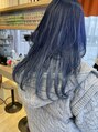ブリーチ必須のネイビーブルー♪しっかり抜けるところまで抜き赤みを消してカラーをオン!濃いブルーなので派手になりすぎず周りと差がつきます!
