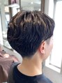マッシュベースのスタイルにニュアンスパーマをかけました。スタイリングは柔らかめのジェルで艶感をプラス。スタイリングの仕方によって、ワンカールで毛流れをつくるだけにしたり、全体的にゆるいウェーブ感を出したりもできる万能なパーマです。