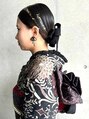 成人式ヘアセット パール リボン タイトアレンジ 着物ヘア