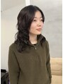 クセ毛+パーマの残りをいかしたスタイリング。レイヤーをしっかり入れて動きを出します。