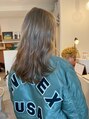 ブリーチしてから黄色味を抑えるベージュを乗せたブロンドカラーヘアです。毛先に重さを残すようあまり段は入れずカットすることでパサついて見えないようにバランスをとっています。