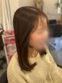 ブリーチ歴あり前回の赤味の残留もありでしたがミルクティーベージュ希望でした^^赤味のところとブリーチ歴のところと薬剤をかえ自然につなげるのが大変でしたが綺麗になりました^^カットは鎖骨くらいまでカットかわいいです★