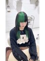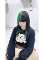 ベースは黒染め2回の履歴がある状態からブリーチオンカラーで、ベースはインナーデザイン、前髪はツートンデザイン♪黒染めの残留と取り除きながらブラック×グリーンのカラーデザインが可愛い♪
