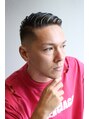 バーバーショップに負けないスキンフェードクオリティーに顔まわりにだけ入れたハイライトが更にデザインを強調した海外風オールバックスタイルです。