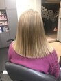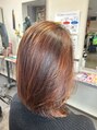 ミルボンシーディルカラーオレンジベージュ白髪染め+バレーヤージ+リシオネオ ストレートなのに毛先が内牧になります。