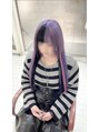 ベースはブリーチオンカラーでベースはラベンダーに、顔まわりにブラックのデザインを入れ、今回エクステも染めてラベンダー、ピンクブラックのデザインロングに♪エクステも染めて作れるのでどんな色でもロング可能♪色落ちも一緒に楽しめる♪