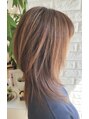 ロングウルフ。ロングレイヤー系のウルフスタイル。軽さを出し、エアリー感でザックリした感じ。明るいイノアカラーで軽さを強調。