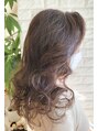 ロングレイヤー。イノアカラーで表面とインナーの明度と彩度を変え、動きを強調した巻き髪スタイル。