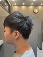 サイドを2ブロック、バックはナチュラルにつなげた刈り上げでスッキリ爽やかな印象を与えることができます*